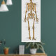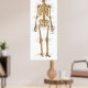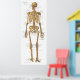 Human skeletal anatomical poster. Posterior view of the bones of the body with ligaments and tendon attachments of the joints. Bones and sutures of the skull. Bones and ligaments of the hand, foot, shoulder and pelvis.