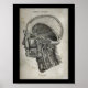 Vintage illustration of the cross section of the human skull showing the spinal nerves and arteries.