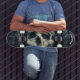 A horrible human skull against the dark background. The customisable template name "Christopher". You can change or delete the name. To change the colour and the position of the text, to change the type of the font, please, use the "Edit Design" button or "Click to customise further" link under "Personalise this template" option. Elegant skateboard for your outdoor activity.