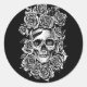 Human Skull Roses Goth Biker Art Illustration Classic Round Sticker