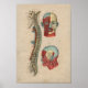 Vintage anatomical lithograph of the human nervous system. Cervical and lumbar plexuses. Nerve supply to the face. 1841, by C.J. Sarlandiere M.D.