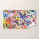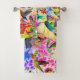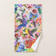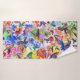 A gorgeous hand painted colourful print featuring many hummingbirds flying among beautiful flowers.