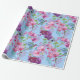 A Beautiful Wrapping Paper Purple And Pink Floral With Hummingbirds In Flight On Blue Background For Birthdays