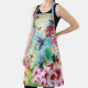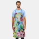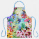 A spectacular apron with a beautiful watercolor painting of hummingbirds flying among colorful flowers. A one of a kind apron that's perfect for gardening or a any other activity.