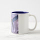 White coffee mug trimmed in blue with a image of a blue sapphire hummingbird, painted by Jo Ann Hayden