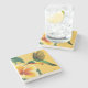 The coasters are gorgeous, a quality feel and heavy weight. They look like a precious archeological find. A rustic stone juxtaposed with a modern floral black and white print. I like the way the print goes slightly imperfect on the cut stone edges giving them a kind-of natural beauty.