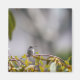 A photograph of a hummingbird perched on the branch of a leafy shrub in a garden. Image Copyright ©2024 Kimberly J Tilley. zazzle.com/store/developingnature