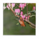 Photo of a hummingbird flying and sipping nectar from some pink bleeding hearts flowers. This picture of a rufous hummingbird can be customised with your own text and printed on many different products.