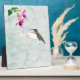 Ruby-throated hummingbirds gather along the Gulf Coast throughout the months of August and September, preparing for their annual migration to their winter home in Mexico. While preparing they seek-nectar filled blooms of plants like the fuschia and trumpet vine to fuel them on their journey. This design features a female ruby-throat approaching a tempting pink and purple fuschia bloom.