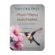 Announce your upcoming wedding day for family and guests with a Grey Hummingbird and Hibiscus Save the Date Magnet. Magnet design features a pair of bright pink hibiscus flowers with a ruby throated hummingbird. Personalise with the groom and bride's names along with the wedding date. Additional wedding stationery and gifts available with this design as well.