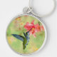 Hummingbird and Pink Lily on Floral Pattern Key Ring