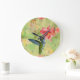 Hummingbird and Pink Lily on Floral Pattern Large Clock