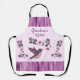 Personalise this "One of a Kind" Women's Hummingbird Apron! It Features a Colourful Hummingbird Sipping Nectar from Beautiful Large Pink & Purple Flowers on a Light Purple Background...Surrounded by a Purple Border!