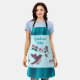 Personalise this "One of a Kind" Women's Hummingbird Apron! It Features a Colourful Hummingbird Sipping Nectar from Beautiful Large Pink & Purple Flowers on a Light Turquoise Background.....and Turquoise Borders!