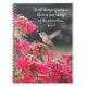 Personal sized, spiral bound notebook that features the photo image of a tiny Hummingbird in flight over pink Bee Balm flowers along with a philosophical wisdom quote by the historian, Aristotle, that reminds us of how marvellous nature is. Use as a journal or to keep important notes.