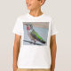 100% cotton so perfect for summer, It is a nicely designed t-shirt, the fabric is soft and the seams finished well, the body of the t shirt has no side seams. I bought a medium size for my two grandsons, aged 9 and 8 it will be slightly big on them but I would rather that than too small