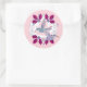 This design is available as a classic round sticker, which can be used to decorate gift boxes, greeting cards, or any other holiday items. The stickers are printed on high-quality paper and are easy to peel and stick.