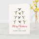 Spread your holiday cheer with this pretty card featuring ruby-throated hummingbirds. The design can be transferred to other products.