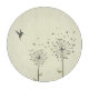Digital illustration of a small hummingbird hovering around some dandelion flowers