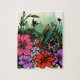 This vibrant graphic design captures the essence of springtime in a lush garden, where a delicate hummingbird flits gracefully among a tapestry of colourful flowers. The scene is bursting with life, featuring a rich palette of blooming blossoms in shades of pink, yellow, and purple, contrasted by the deep greens of flourishing trees that sway gently in the warm breeze. Sunlight filters through the leaves, casting a golden glow over the entire landscape, highlighting the iridescent feathers of the hummingbird as it hovers, poised to sip nectar from a nearby bloom. This enchanting portrayal invites viewers to immerse themselves in the beauty of nature, evoking feelings of joy, tranquillity, and the wonder of the outdoors.