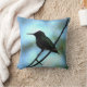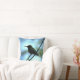 This lovely throw pillow features a tiny hummingbird perched on a branch, silhouetted against a luminous blue sky. The image is repeated on the back.