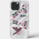 Personalise this Unique "One of a Kind" Hummingbird iPhone Case! It Features an Adorable Hummingbird Sipping Nectar from Large Beautiful Pink & Purple Flowers... on a White Silk Background!