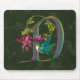 A beautiful hummingbird in iridescent blues and greens, drinking from an ornate deep pink flower hanging from a metallic initial D, shimmering in rainbow colours. This unique monogram will be perfect as a gift for a birthday, for invitations - or for yourself.