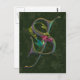 A beautiful hummingbird in iridescent blues and greens, drinking from an ornate deep pink flower hanging from a fancy metallic initial S, shimmering in rainbow colours.