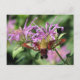 Postcard design features a photograph of a Hummingbird Clearwing Moth feeding on native Wild Bergamot (Monarda fistulosa).