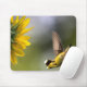 The bright yellow colour of a sunflower reflects off an approaching hummingbird.