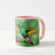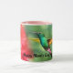 Beautiful photo of a hummingbird flying near flowers with a wish for a Happy Mum's Day, is featured on this pretty mug for Mum. Pink and white mug with colourful photo is a perfect gift to give Mum on her special day!
