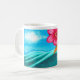 A watercolor painting of a colorful Hummingbird, Fancy Flowers, a Wave & a very Blue Sky with Fluffy Clouds. Makes a fun gift for the nature lover in your life.