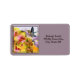 Address label featuring the image of a hummingbird against a pretty purple lilac and pink and yellow orchid background. Add your name and address using the boxes to the right of the product image. If you would like more control of your product, click the "Customize It" button and use the tools to change text, font, font size or color. Image size and position may also be adjusted to perfectly fit the label size you choose.