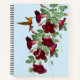 A brightly coloured hummingbird sips nectar from a bright red Mandevillea flower on this Spiral Notebook.