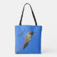 Are you a birdwatcher or nature lover? This tote bag features an adorable little hummingbird sitting high on a branch looking out over the world. With his distinctive long beak and beautiful feathers, he stands out against the bright blue sky. Quickly and easily personalise your name. The same design is featured on both the front and back of this grocery tote bag.