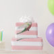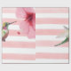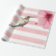 Summery wrapping paper, with Pink and White stripes. Pretty Hummingbird, buzzing away next to a tropical, Hibiscus flower.