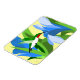 Blue flower and Hummingbird art with yellow background on flexible magnets