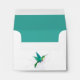 This beautiful envelope features a delicate silver grey swirl design with a teal coloured hummingbird softened into the background that gives a soft romantic feel with a slight vintage yet modern look. This envelope matches the Hummingbird Swirl wedding RSVP Card and can be purchased separately. Size is 5 ¾" W x 4 3/8" (Note Card, A2).