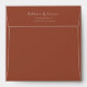 Terracotta square wedding envelope for hummingbird lovers featuring a hand painted border of North American hummingbirds and floral elements on the inside.