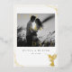 These beautifully elegant black and white wedding save the date cards are designed with a hand-painted watercolor hummingbird and accented with gold foil typography and border. Customise with the details of your special day, including a couples photo, for classic memorable invites.