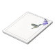 This pad features, in the upper right, an image of a hummingbird feeding at at beautiful purple flower.
