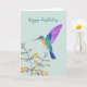 Birthday card featuring a hand-painted hummingbird and flowers. The inside is left empty for your own handwritten message.