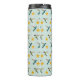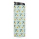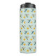 Cute thermal tumbler featuring a pattern of broad-billed and a broad-tailed hummingbirds with star ornaments on a light blue background.