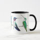 This pretty mug for bird lovers is featuring several hand painted hummingbird species, such as a Broad-billed Hummingbird, a female Ruby-throated, a Violetear, a Coronet Hummingbird and a Long-billed Starthroat Hummingbird. All bird images are taken from watercolor illustrations by Christiane Dobbins.