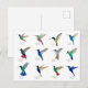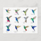 Unique post card featuring several hand-painted species of mostly tropical hummingbirds such as Mango Hummingbirds, Velvet-purple Coronet Hummingbird, blue-throated Starfrontlet, Golden-tailed Sapphire, Dusky Starfrontlet, and Mexican Violet-ear Hummingbirds among others. Images taken from my original watercolor paintings.