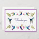 Unique Thank you card for hummingbird lovers featuring several hand-painted species of tropical hummingbirds such as Velvet-purple Coronet Hummingbirds, White-necked Jacobin, Golden-tailed Sapphire, Fiery-throated, and Mango Hummingbirds. All images taken from original watercolor paintings.