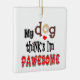 Humour My Dog Thinks I’m Pawesome Photo Name Cera Ceramic Ornament