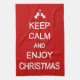 This is a kitchen towel featuring the famous saying KEEP CALM AND ... but the saying has been altered to create a humourous Christmas design. The text, in white against a red background, reads KEEP CALM AND ENJOY CHRISTMAS, there is also a white illustrated sprig of holly above the text. This might make for a fun Christmas gift. www.nataliekinnearphotography.co.uk