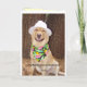 On the cover, a yellow Lab in a play hard hat, shades, and blue denim bandanna behind a toolbox. Inside he's sporting a Hawaiian bandanna and a white Fedora. The background colour and the text can be changed. Moses enjoyed this. You can see he's smiling. He works for chicken jerky.