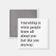 “Friendship is when people know all about you but like you anyway.” Humourous and quite true!